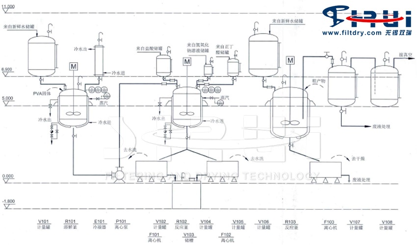 The process flow of the polyvinyl alcohol butyral PVB resin water washing kettle