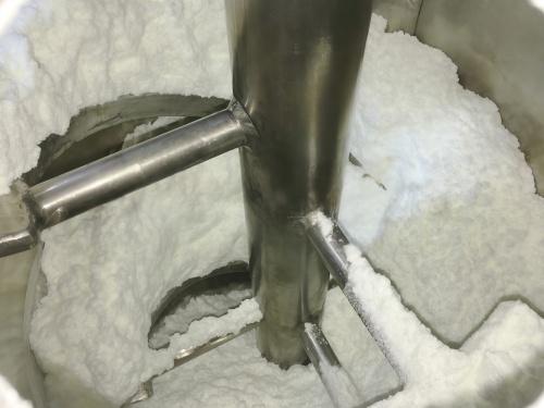 (2) For viscous paste-like materials like vitamin C, the maximum moisture content that can be controlled without agglomeration when drying with a single-cone vacuum dryer is 40%. Moreover, since the surface of the material does not scatter after drying, it hinders the diffusion of internal moisture to the surface layer, prolongs the drying time, and at the same time, the drying effect is also affected.