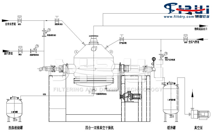 The working principle of the rotary crystallization, filtration, washing and drying four-in-one (four-in-one double-cone dryer)
