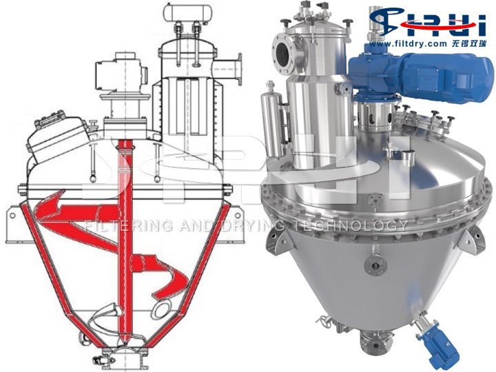The main structure of the internal heating helical ribbon single cone vacuum dryer