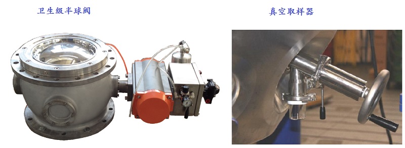 (5) Inflatable Sealed half ball valve: This half ball valve is designed to meet the special requirements of feeding and discharging for single-cone vacuum dryers. The valve is manufactured in accordance with precise tolerance standards and, in combination with a special structure, forms an excellent vacuum and pressure sealing environment. It features a standard inflatable sealed design with no dead corners, is easy to clean, complies with GM standards, and can be cleaned online.