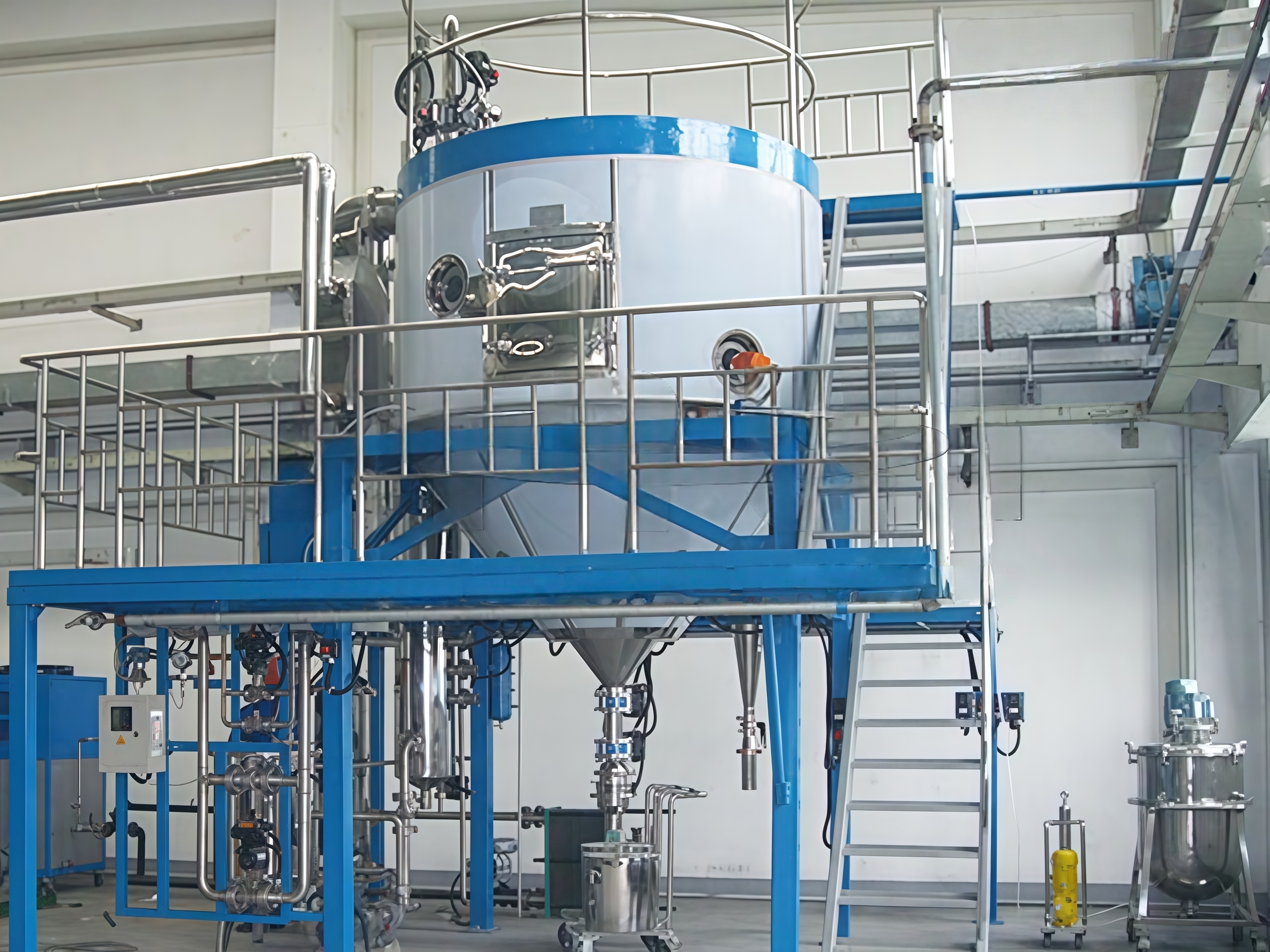 (2) This unit adopts air flow spray drying technology, which enables it to achieve nitrogen-powered atomization of high-solid content, viscous and thick liquid materials that traditional centrifugal spray drying cannot match. As a result, it increases production capacity and reduces energy consumption by more than 70%, achieving a remarkable energy-saving and high-yield production effect.