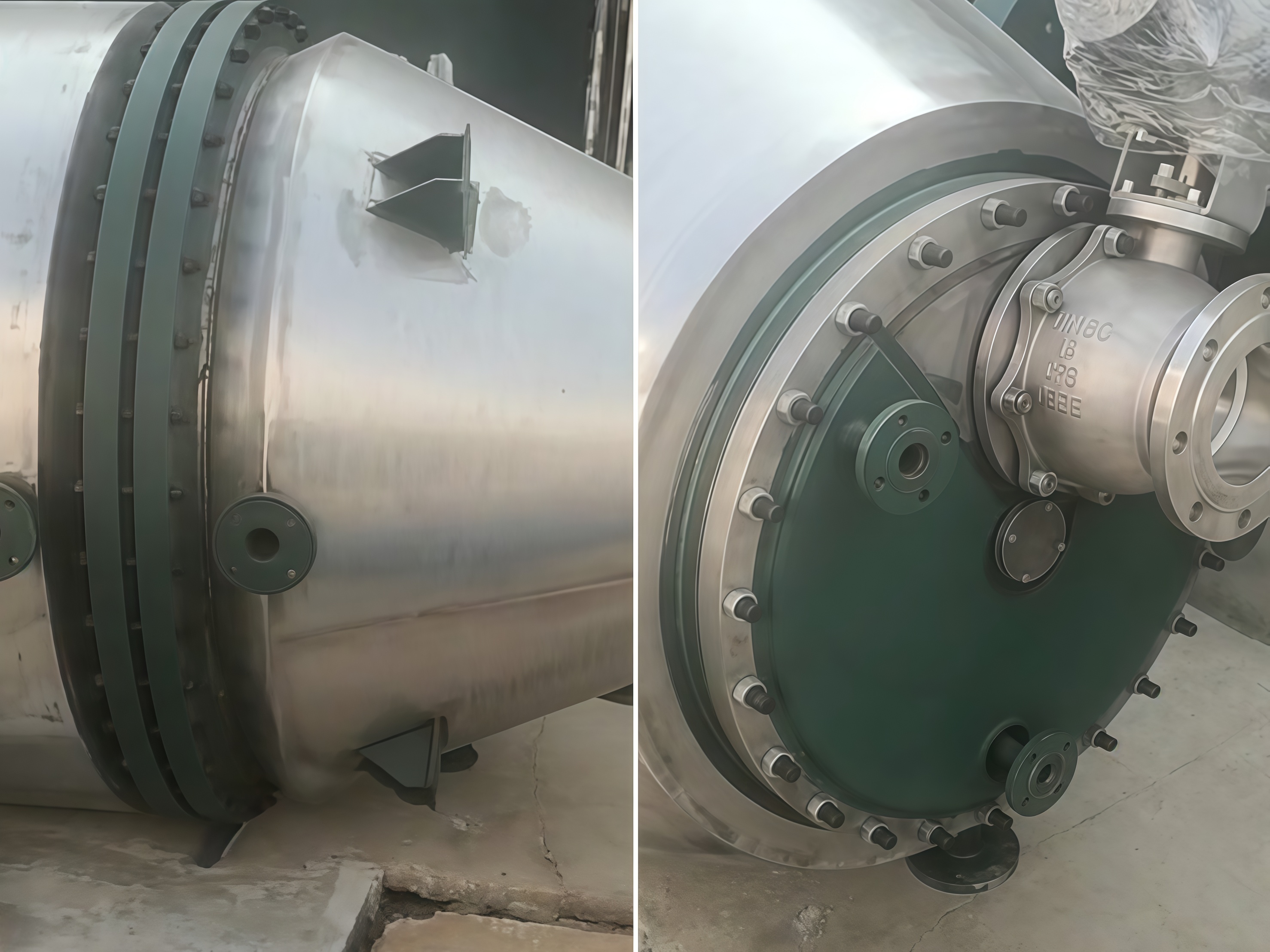 ⑦ The process connection pipes adopt ISO2852 clean quick-opening or flange connection (the clamps are high-pressure clamps; the feed port, blasting vent port, pressure transmitter port, mother liquor outlet, and jacket inlet and outlet are flange connections), meeting the requirements of pressure vessels.