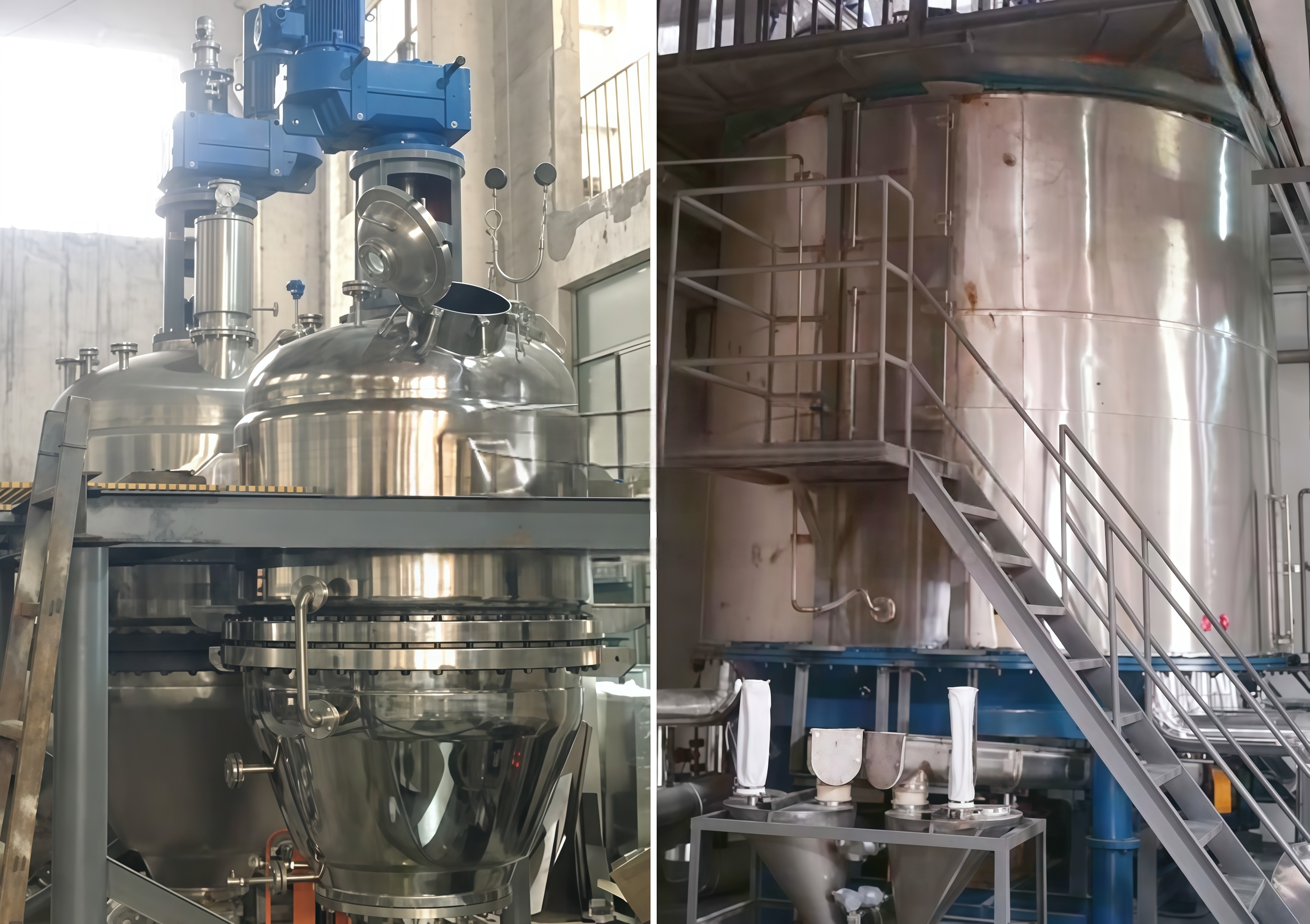 (4) Multiple equipment, cumbersome operations, and inability to meet the requirements of large-scale industrial production processesFiltration, washing, and drying are all processed using independent equipment such as centrifuges, washing tanks, and dryers. Due to the scattered equipment, the production process is not easy to control, and the degree of automation is low. Improper control or manual operation in sampling, testing, feeding, supplementary feeding, temperature, pressure, etc., often leads to errors and contamination. The transportation of materials between the three devices of reaction, filtration, and drying is more difficult. Sometimes, this can cause the entire set of devices to be unable to operate completely normally, or result in high labor intensity, long production cycles, high energy consumption, and low efficiency, which affect product quality and fail to meet the requirements of large-scale fine chemical production processes.